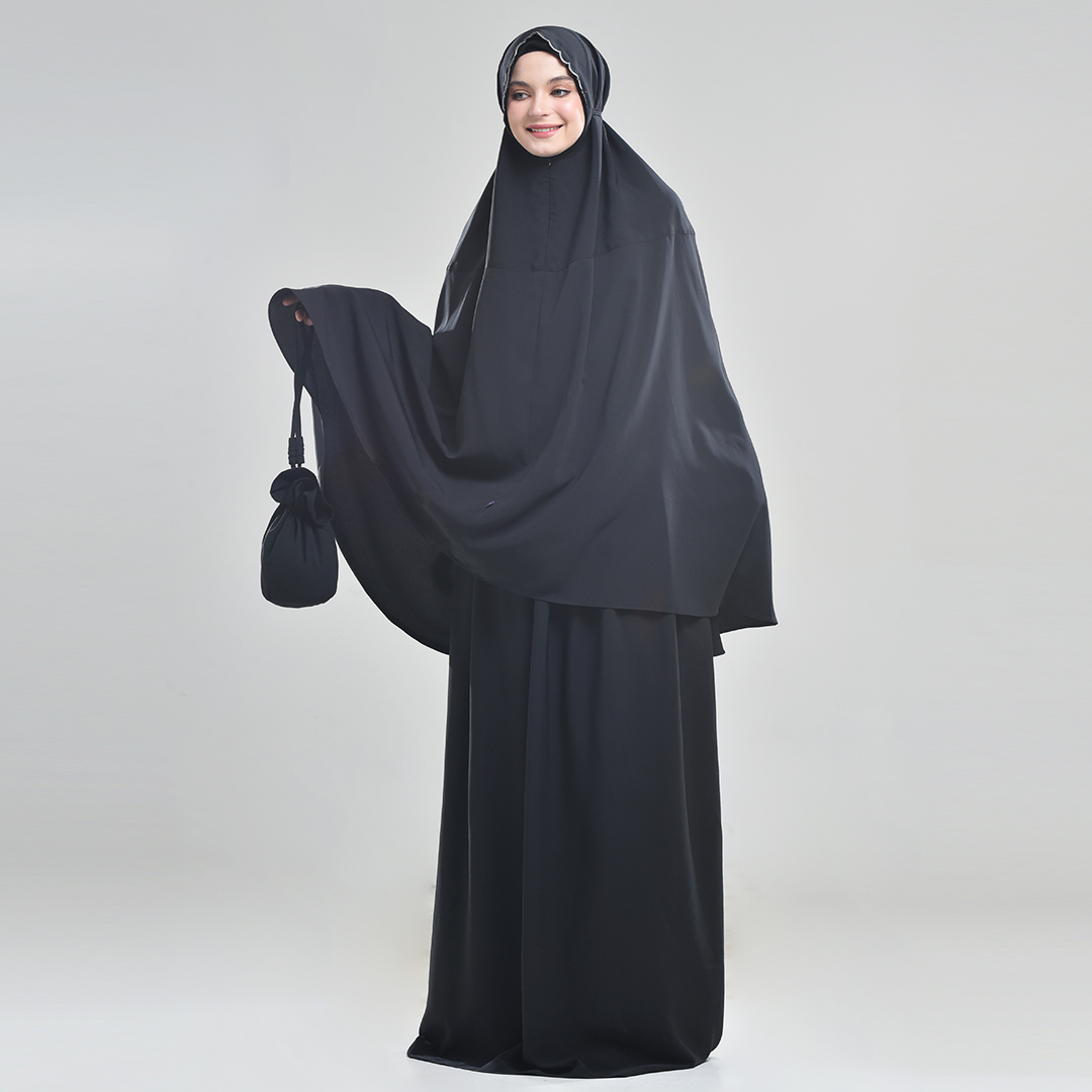 Jenis mukena ini adalah model mukena yang paling banyak digunakan. Dengan berbagai pilihan warna, motif, dan ukuran, membuat mukena two piece menjadi pilihan hampers mukena premium untuk kamu berikan kepada orang tersayang. Pastikan untuk memilih mukena dengan bahan yang tebal dan jatuh agar ibadah semakin nyaman dan aman, ya!